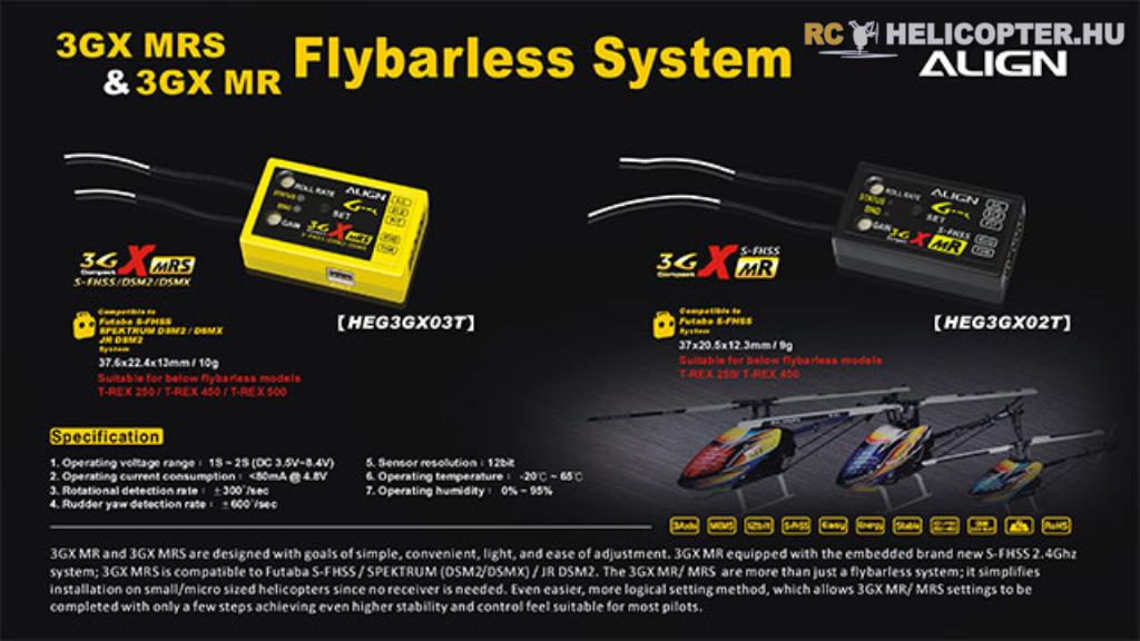 Az Align megjelentette 3GX flybarless rendszerek olcsóbb változatát. Az árát tekintve mintegy a fele a teljes értékű 3GX-nek, de ezért az árért kompromisszumokat is vállalnunk kell.